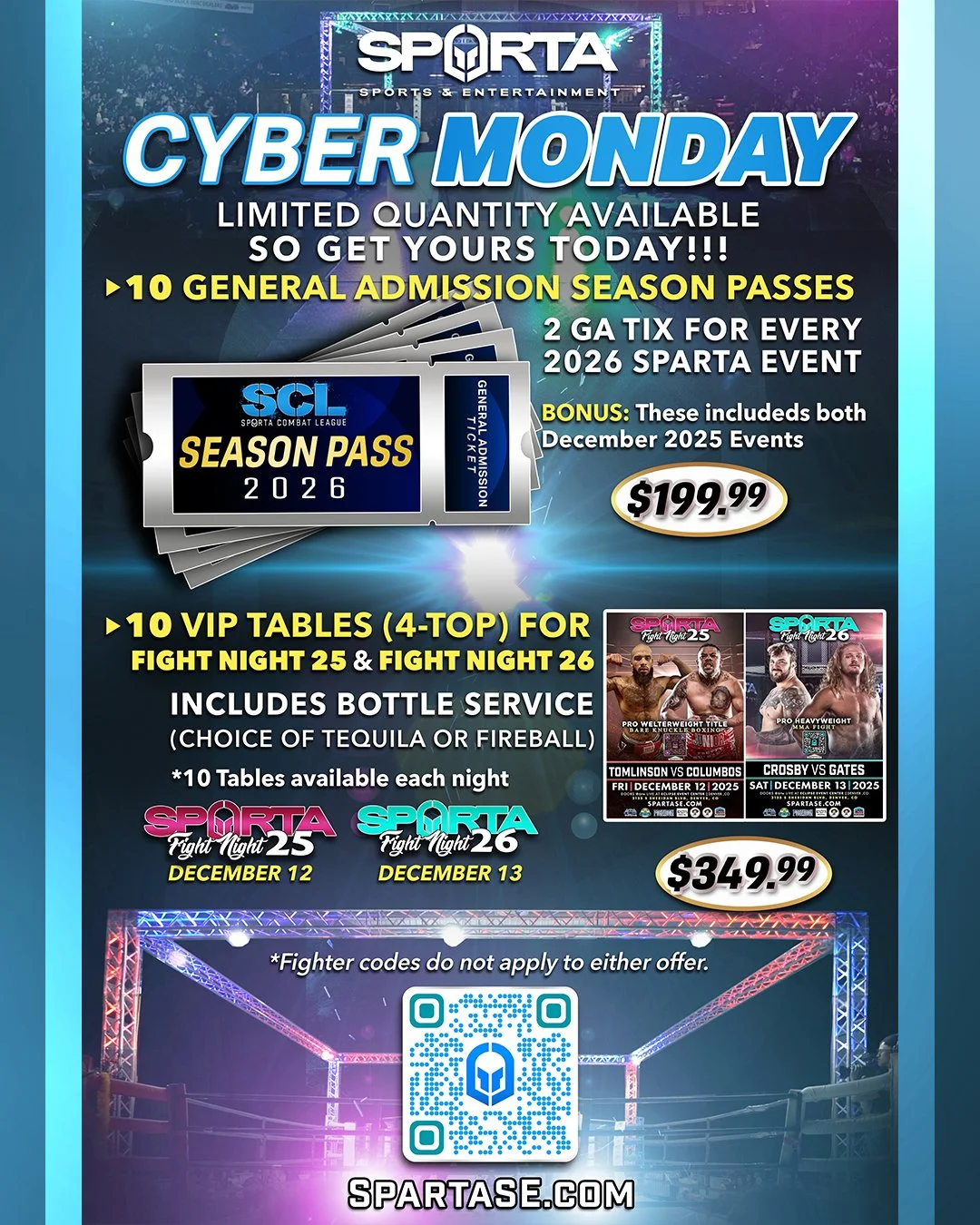 Cyber Monday Specials Categories: All Cyber Monday Specials Sparta Coffee Sparta Gear Hats Hoodies Kids Shirts Ladies Guys All / Cyber Monday Specials All Cyber Monday Specials Sparta Coffee Sparta Gear Ugly Christmas Sweater from $34.99 Select Size XSmall Small Medium Large XLarge XXLarge XXXLarge Add To Cart Added! December 13th 4-Top VIP Tables: Includes bottle service Sale Price: $349.99 Original Price: $549.99 Sale Add To Cart Added! December 12th 4-Top VIP Tables: Includes bottle service Sale Price: $349.99 Original Price: $549.99 Sale Add To Cart Added! 2026 General Admission Season Passes Sale Price: $199.99 Original Price: $999.99 Sale Add To Cart Added!